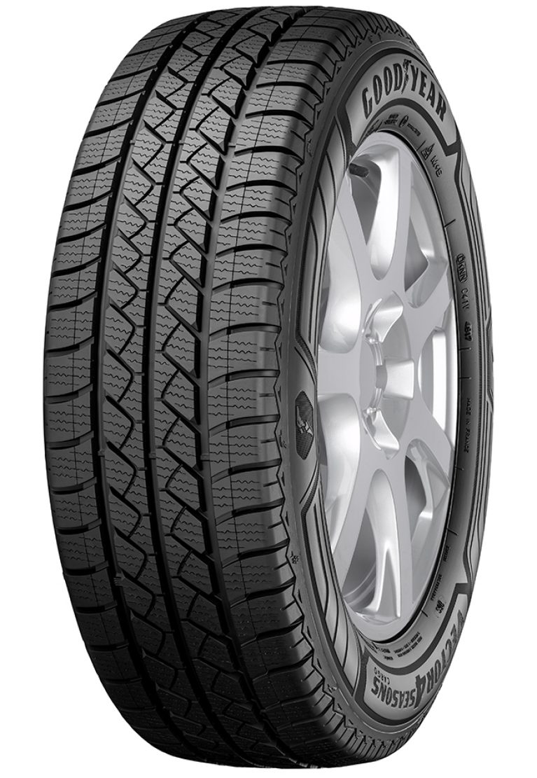 Het merk is GOODYEAR, een Premiummerk. Het type profiel van de band is Vector 4Seasons Cargo.